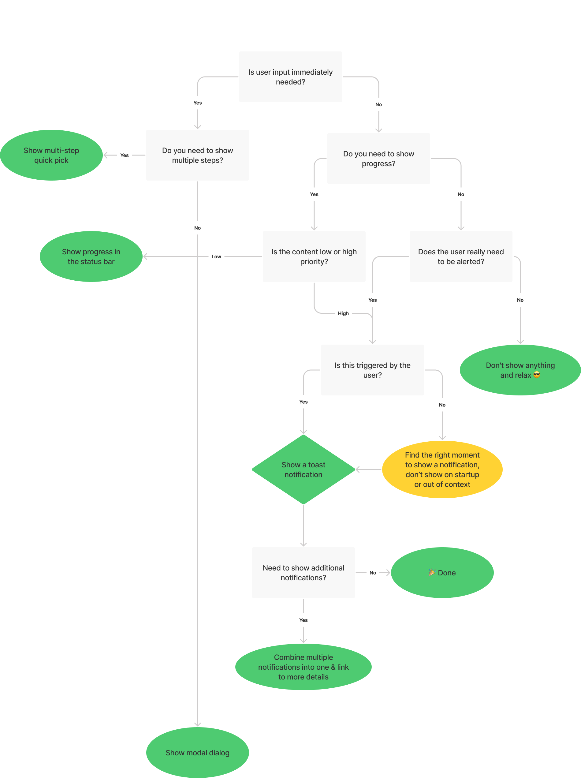 사용자의 주의를 존중하기 위해 보내는 알림 수를 제한하는 것이 중요합니다. 알림을 표시해야 할지 여부를 결정하는 데 도움이 되도록 알림 결정 트리를 따르십시오.